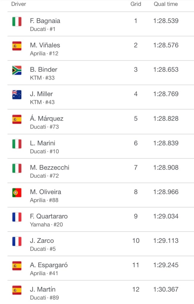 Sepertinya Pabrikan Jepang belum juga menunjukkan perbaikan hingga sesi qualifikasi ini, pembalap andalan Honda Marc Marquez harus puas start dari posisi ke delapan belas, sedangkan pembalap Yamaha Fabio Quartararo, juara dunia tahun 2021 itu menempati posisi start ke sembilan. Mengingat ini adalah balapan kandang bagi KTM, Apakah dominasi pabrikan eropa akan terus berlanjut di MotoGP Austria 2023 ini? dapatkah KTM mencuri kemenangan dari pasukan Ducati? Ataukah rider Aprilia yang kembali berjaya seperti di seri Silverstone lalu?