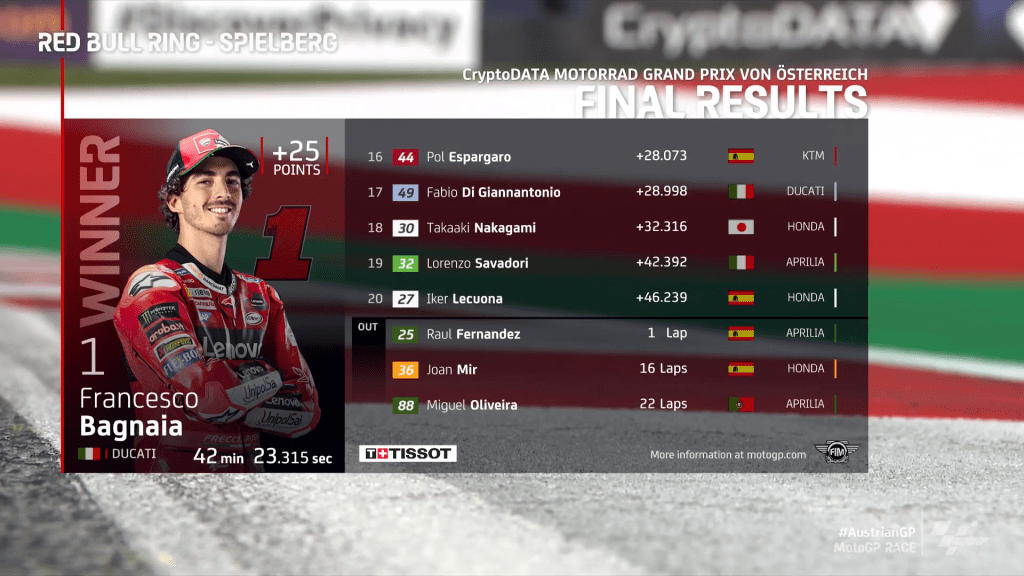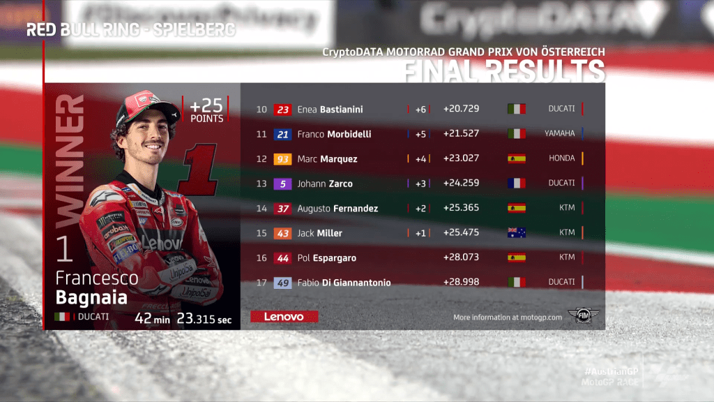 Hasil balapan utama MotoGP Austria 2023