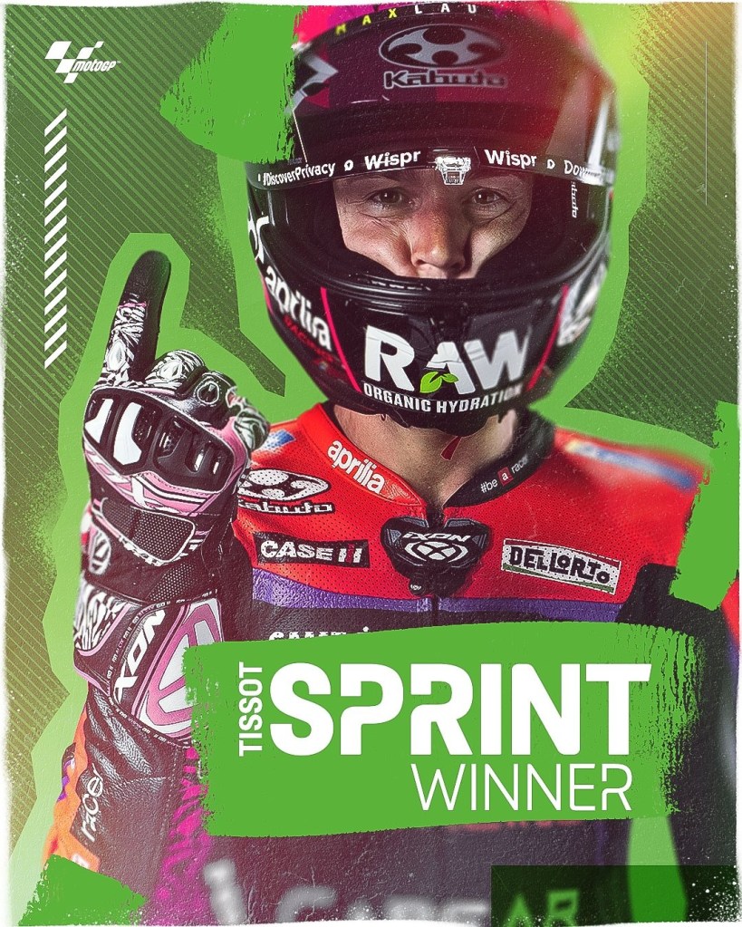 Kali ini pasukan Aprilia berhasil tampil brilian. Penampilan 3 rider mereka berhasil menunjukkan performa impresif selama sprint race kali ini. Beberapa lap berselang, Jorge Martin hampir berasenggolan dengan Vinales setelah Martin memaksa untuk mengovertake Vinales dari sisi dalam, namun akhirnya Martin melebar dan mengakibatkan dirinya turun beberapa posisi. Di barisan depan, Pecco yang memimpin balapan mendapat tekanan dari Aleix Espargaro. Setelah menempel ketat pecco, akhirnya 6 lap menjelang finish, Espargaro berhasil mengovertake Pecco dan mengambil alih pimpinan balapan. Pecco yang posisinya melorot ke posisi kedua, menjelang finish kembali harus mendapatkan tekanan hebat dari Vinales diposisi ketiga, Pada lap terakhir, Vinales terus menekan Pecco untuk merebut posisi kedua. Hingga bendera finish dikibarkan, Aleix Espargaro tak terkejar untuk mengunci posisi pertama diikuti selebrasi wheelie. Pecco berhasil menahan gempuran dari Vinales untuk mengamankan posisi kedua. Posisi ketiga ditempati oleh Vinales. Brad Binder berhasil finish keempat disusul oleh Jorge Martin di posisi kelima setelah mengovertake Oliveira. Satrio