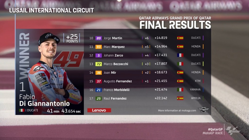 Berikut hasil balapan MotoGP Lusail: