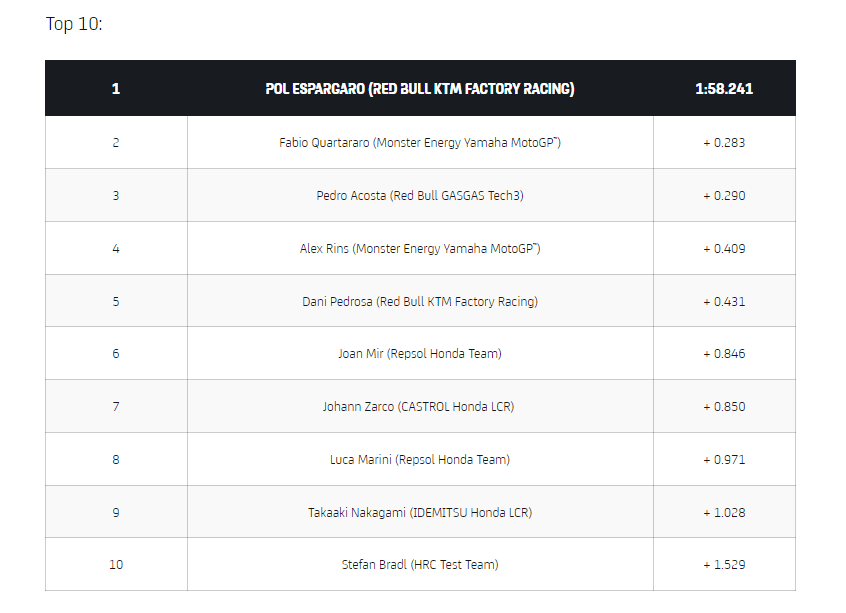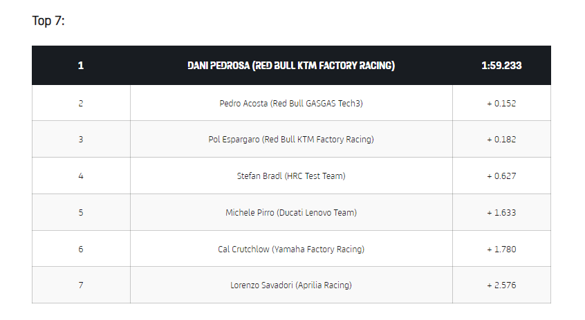 Daftar waktu tercepat pada hari pertama test (motogp.com)